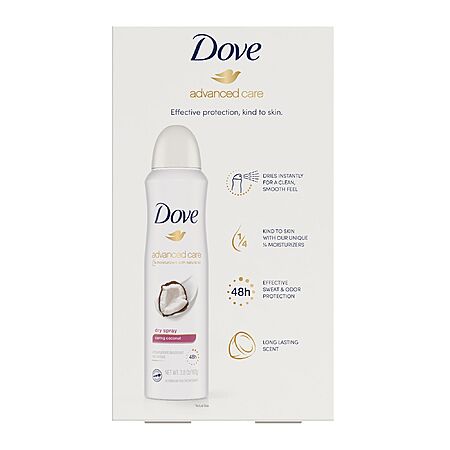 bjs members only: Dove Advanced Care Antiperspirant Deodorant Dry Spray - Caring Coconut, 3 pk./3.8 oz. $2.99