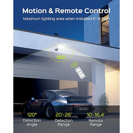 JACKYLED 2 Pack Solar Outdoor Lights Motion Sensor, 108 LED 3 Heads Flood Lights Outdoor Waterproof with Remote & 16.4FT Cable ($19.99)