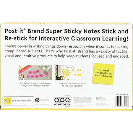 Model: Post-it Super Sticky Notes Teacher Pack, Assorted Colors, 3" x 3", 45 Sheets/Pad, 15 Pads/Pack (654-15SSBTS-SR)