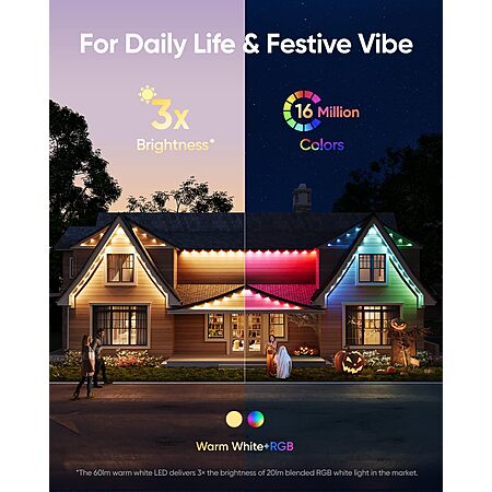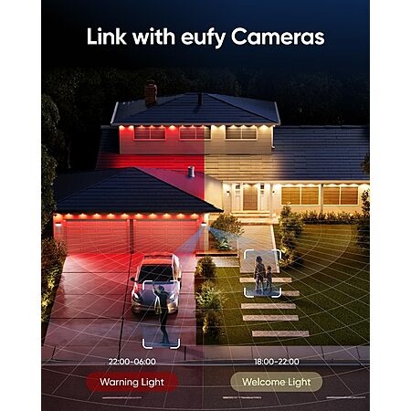 eufy Permanent Outdoor Light E120, Dual-LED RGB and Warm White Eave Light, 100ft, App Control, AI Light Design, IP67 Water Proof, Works with eufy Cameras $199.99 - Amazon