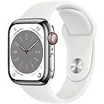 Apple Watch Series 8 [GPS + Cellular 41mm] Smart Watch w/Silver Stainless Steel Case with White Sport Band - M/L - $549