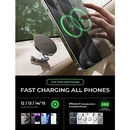 LISEN 15W Magsafe Car Mount Wireless Charger