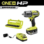 RYOBI ONE+ HP 18V Brushless 1/2" Impact Wrench w/ 4.0Ah Battery & Socket Set