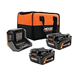 Model: RIDGID 18V 6.0 Ah and 4.0 Ah MAX Output Lithium-Ion Batteries and Charger Kit with Bag