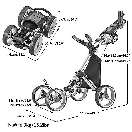 CaddyTek Explorer V8 SuperLite 4 Wheel Golf Push Cart (Silver) $128 + Free Shipping