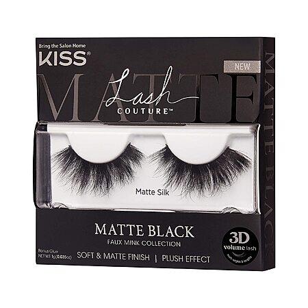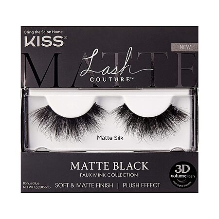 KISS Lash Couture False Eyelashes, Matte Black Faux Mink Collection, 3D Volume Lash, Soft & Matte Finish, Style 'Matte Silk', 1 Pair Fake Eyelashes $3.99