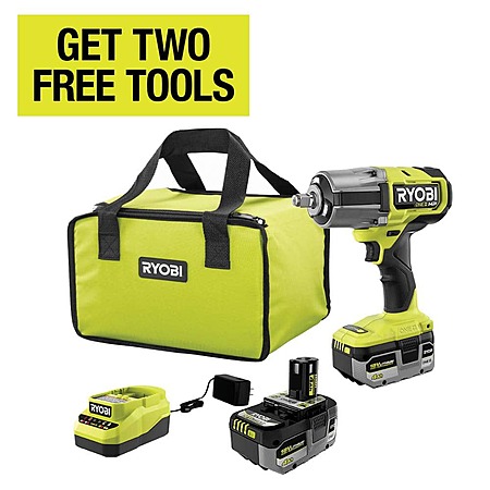 Home Depot has RYOBI ONE+ HP 18V Brushless Cordless 4-Mode 1/2 in. High Torque Impact Wrench Kit with (2) 4.0 Ah HP Batteries and Charger (PBLIW01K2) w/ 2 Free Tools for $279. Shipping is free or select free store pickup where available.