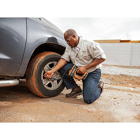 - 20 in. air hose will reach the tire stem on virtually any tire