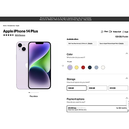 - Go to here to visit the Apple iPhone 14 Plus Page at Verizon. [verizon.com]