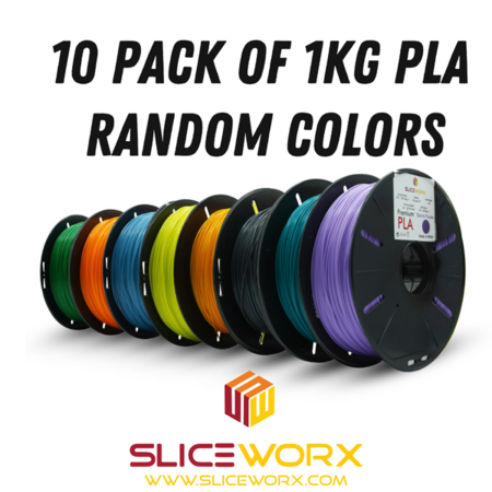 Sliceworx 3D Printer PLA Filament 10 pack x 1Kg Random Combination of Colors $99.99