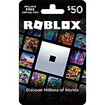 Amazon has $50 Roblox Physical Gift Card for $26.87. Shipping is free w/ Prime or on $35+ orders.