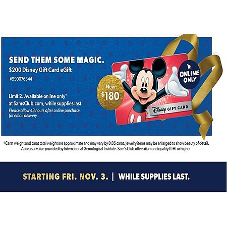 Sam's Club Members $200 Disney E-Gift Card for $180 **Starts November 3, 2023**