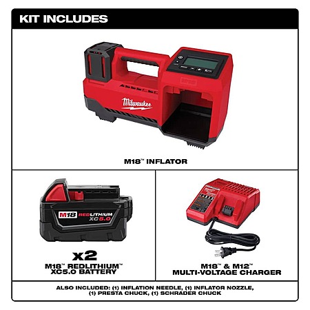 Milwaukee M18 18-Volt Lithium-Ion Cordless Inflator w/ 2x 5.0Ah Batteries + Charger (48-59-1852B-2848-20) on sale for