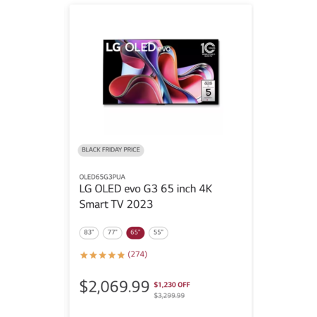 LG OLED evo G3 4K Smart TVs on sale as listed below when you sign-up/login as a qualifying