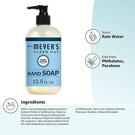 12.5-Oz Mrs. Meyer's Clean Day Hand Soap (Rain Water) 4 for $10.45 ($2.61 each) w/ S&S + Free Shipping w/ Prime or on $35+