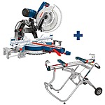 Home Depot has Bosch 15 Amp 12 in. Corded Dual-Bevel Sliding Glide Miter Saw Combo Kit with Bonus Gravity Rise Wheeled Miter Saw Stand (GCM12SD + T4B) on sale for $599. Shipping is free or select free store pickup where available.
