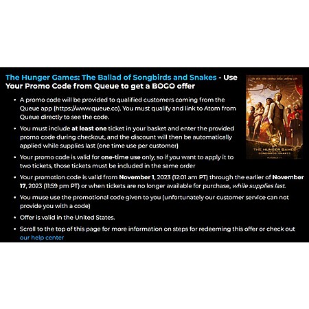 Atom Tickets: The Hunger Games: The Ballad of Songbirds & Snakes Movie Tickets