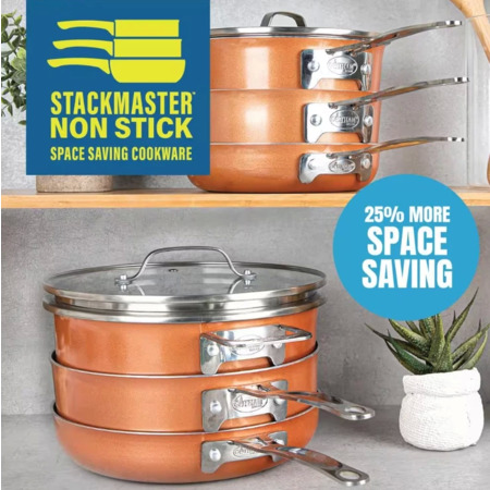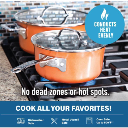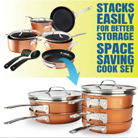 10-Piece Gotham Steel StackMaster Aluminum Cast Textured Ceramic Nonstick Cookware Set w/ Utensils (Brown) $51 + Free Shipping