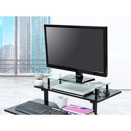 Workstream by Monoprice Universal Monitor Riser Shelf (Clear Glass) 22 x 8.25 in $9.99 + Free Ship