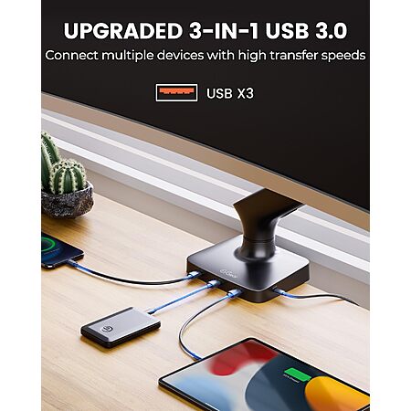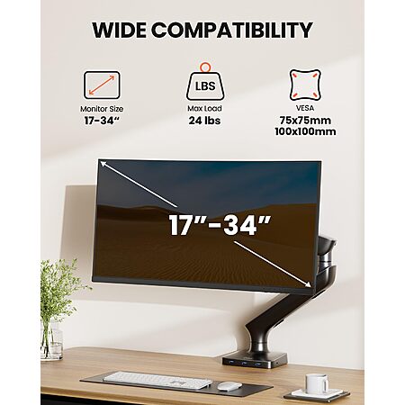 ErGear Single Monitor Arm Desk Mount w/ 3-In-1 USB 3.0 Hub (17-34" Monitor) for