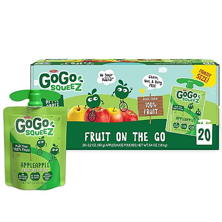 Amazon[amazon.com] has 20-Count 3.2-Oz GoGo SqueeZ Applesauce Variety Packs for the prices listed below when you check out via Subscribe & Save. Shipping is free with Prime or on $35+