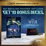 This offer is a promotional item issued by American Multi-Cinema, Inc. Promotional offer available 11/7/23–11/8/23. Offer valid for online transactions only which used the same email address as the members AMC Stubs® account. Bonus Bucks will be awarded into the applicable AMC Stubs account on 11/15/2023. To redeem your Bonus Bucks, sign into your AMC Stubs® account and select the Apply Rewards button on the "Confirm Purchase" page for online transactions or scan your membership QR code at the register and ask the cashier to apply the Bonus Bucks for in-theatre transactions. Bonus Bucks will expire on 1/31/2024. Non-transferable. Limit 4 awards per account. AMC associates are not eligible to participate in this promotion.