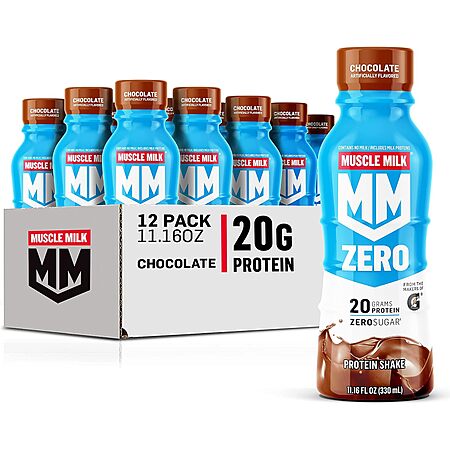 Model: Muscle Milk Zero Protein Shake, Chocolate,20g Protein, Zero Sugar, 100 Calories, Calcium, Vitamins A, C & D, 4g Fiber, Energizing Snack, Workout Recovery, Packaging May Vary,11.16 Fl Oz (Pack of 12)