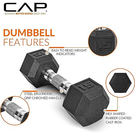150-Lb CAP Barbell 150-LB Coated Hex Dumbbell Weight Set w/ Vertical Rack