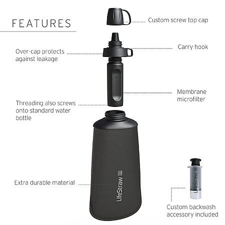 • Versatile water filtration squeeze bottle