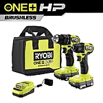 RYOBI ONE+ HP 18V Brushless Cordless Compact 1/2 in. Drill and Impact Driver Kit with (2) 1.5 Ah Batteries, Charger and Bag - $52.13