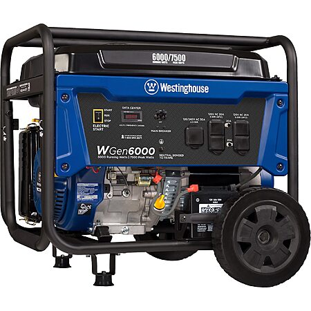 Westinghouse Gen6000 7500 Peak Watt Portable Backup Gas Powered Generator
