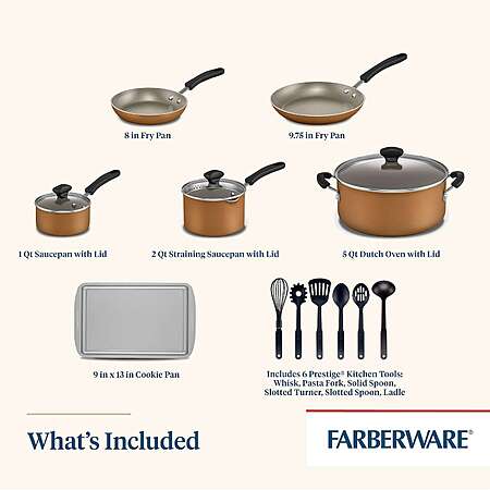 15-Piece Farberware Cookstart DiamondMax Nonstick Cookware Set (Various colors) $39.99 + F/S on Orders $49+