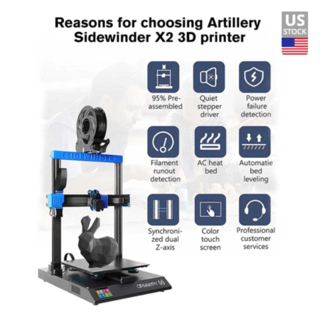 Artillery Sidewinder X2 3D Printer w/ Titan Direct Drive Extruder (300x300x400mm) $190 + Free Shipping