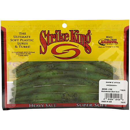 worm plastic lure tackle Strike King Shim-E-Stick Watermelon Chartreuse Swirl Soft Stick Bait Lure - $1.48 at Walmart YMMV