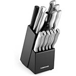 Model: Farberware Stamped 15-Piece High-Carbon Stainless Steel Knife Block Set, Steak Knives, Black