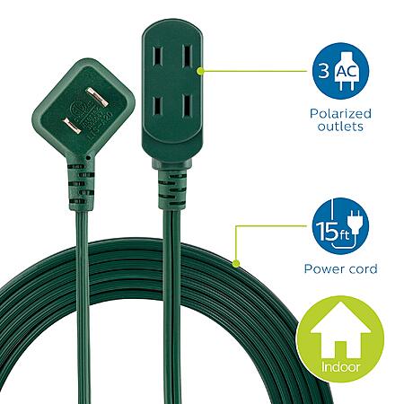 15' Philips Accessories 3 Outlet Extension Cord (Green) $5.60 + Free Shipping w/ Prime or on $35+