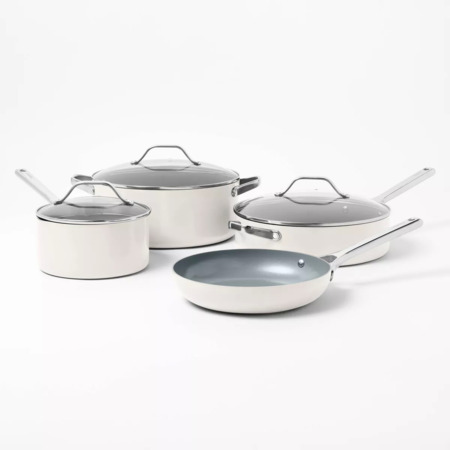 7-Piece Figmint Nonstick Ceramic Coated Aluminum Cookware Set (Blue, Cream, Sage, Orange) $50 + Free Shipping