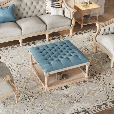 Émilie 31" Wooden Frame Linen Upholstered Ottoman Footstool $80 + Free Shipping