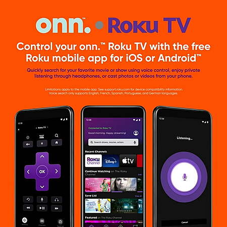 | Product Description: | Binge on movies and TV episodes, news, sports, music and more! We insisted on 1080P Full High Definition for this 42” LED TV, bringing out more lifelike color, texture and detail. We also partnered with Roku to bring you the best possible content with thousands of channels to choose from, conveniently presented through your own customizable home screen. Watch via cable, satellite, HDTV antenna or just start streaming from your favorite app. Like the sound of your own voice? You can actually use it with the Roku mobile app to search for the title, artist, actor or director, or just go old-school with our handy remote. We handle all software updates too, automatically, so all you have to worry about is what to watch. Lose yourself in the ultimate viewing experience. We're onn.™ to something here. Say goodbye to stressful decision-making and fear of the electronics aisle. Our mission is simple…to deliver great products and make it easy. Choose onn. and get back to using your brainpower for the important things in life like pondering the question, |