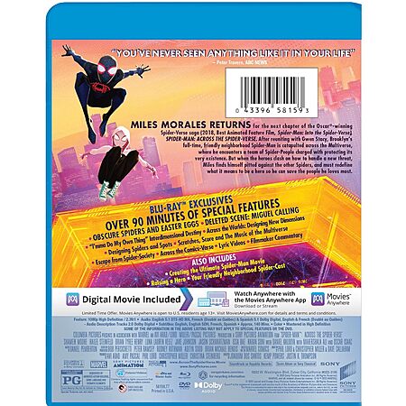 Spiderman Across the Spider Verse BD/DVD Combo + Digital $11.99 - Amazon/Best Buy