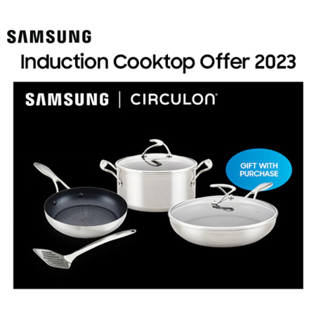 Samsung Home Appliance Black Friday: (30" Smart Induction Cooktop with Wi-Fi in Black + Smart 46 dBA Dishwasher with StormWash™ in Stainless Steel + Free cookware set) $984
