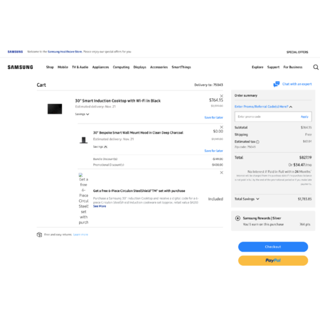 YMMV Samsung EPP/EDU 30" Smart Induction Cooktop with Wi-Fi in Black with free 30" Bespoke Smart Wall Mount Hood $764 $764.15