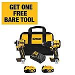 Purchase the Dewalt 20V MAX XR Hammer Drill and ATOMIC Impact Driver 2 Tool Combo Kit with (2) 4.0Ah Batteries, Charger, and Bag [homedepot.com] and select from the following free bonus tools: