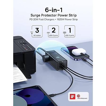Prime Members: Baseus 6-in-1 PowerCombo Pro Surge Protector Strip w/ 20W PD