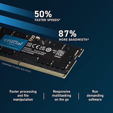 64GB (2x32GB) Crucial CL40 SODIMM DDR5 4800MHz Laptop Memory (CT2K32G48C40S5) on sale for $126.99.