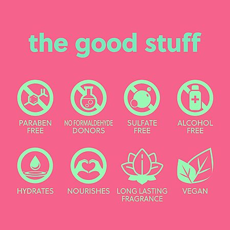 • Vegan, paraben free, sulfate free, alcohol free, no formaldehyde donors and long-lasting fragrance