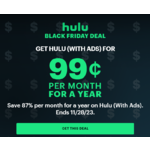 Hulu is offering 1-Year of Hulu w/ Ads Subscription for $0.99/Month when you login to your account and click on 'Get This Deal' valid for New/Eligible Returning Subscribers only