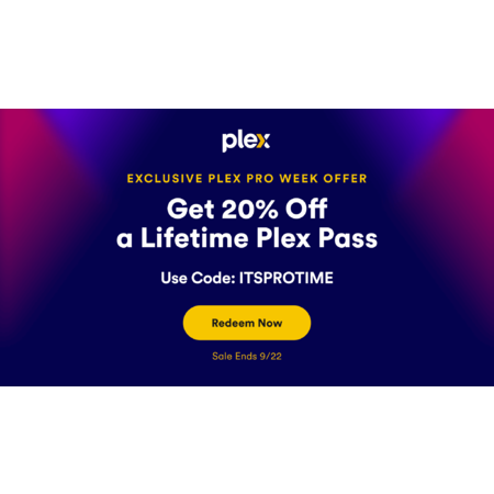 Plex is offering their Lifetime Plex Pass Subscription Upgrade on sale for $89.99 when you apply promo code FUZZYFRIDAY during checkout.