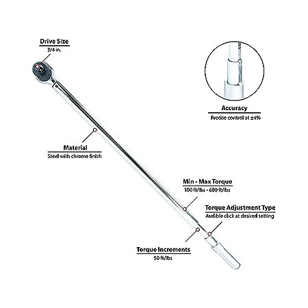 About this item:- Determines from 100 to 600 ft.-lbs. in 1-pound increments so you can ensure your nuts and bolts are perfectly tight.