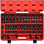 NEIKO 02448A 1/2" Drive Master Impact Socket Set, 65 Piece, Standard SAE (3/8"-1-1/4") & Metric (10-24 mm) Sizes, Deep & Shallow Kit, Includes Adapters & Ratchet Handle $134.99